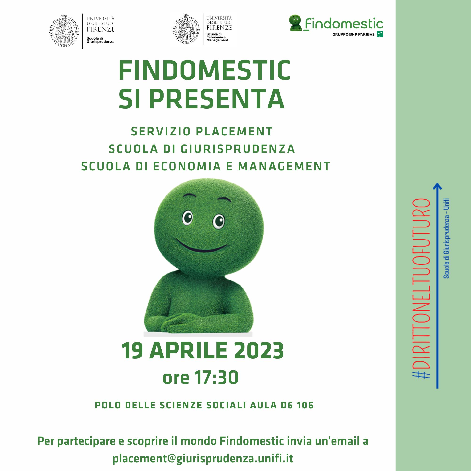 aula D6/106 Per partecipare e conoscere il mondo Findomestic invia un'email a placement@giurisprudenza.unifi.it